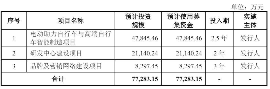 面对这些挑战,富士达选择了上市募资的道路。公司计划募资7.73亿元,其中4.78亿元用于电动助力自行车与高端自行车智能制造项目,2.1亿元用于研发中心建设项目,8297万元用于品牌及营销网络建设项目。