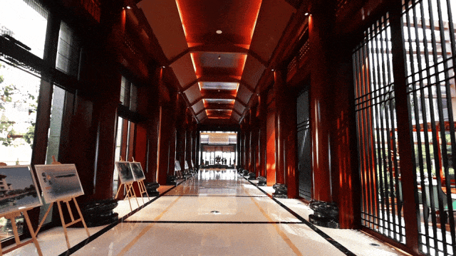 酒店一期项目,占地8万㎡,分为南北两区,建筑格局大气沉稳,汉唐遗韵,太湖风光近在咫尺。二期项目为全新设计的别墅区,设有专门的接待大堂,中式古典外观,继承了汉唐建筑风格,气魄宏伟,庄重大方。