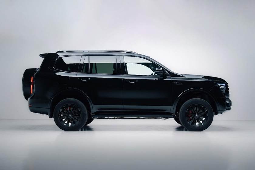 与之无缝衔接的黑色中网,以大面积黑化设计拉宽车身视觉宽度,不动声色间释放霸道气场。黑色轮毂搭配红色卡钳,形成强烈视觉反差,为整车注入满格运动张力;黑色的行李架、侧踏以及整车全黑外观饰条,更是黑武士版本的独特标识,精准勾勒车身轮廓,将潮酷质感拉满,在硬派底色之上再添精致格调。每一处细节都浑然一体,完美演绎出不怒自威的强大气场。