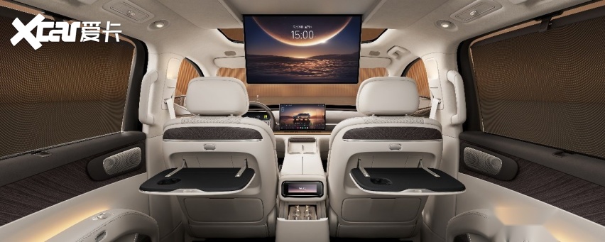 座椅采用12层奢享级结构,全车座椅支持电动调节,并实现6座加热、4座吸入式通风与10点式按摩,二排右侧零重力座椅支持120°零压躺姿、4向腿托与ABTS一体式安全带,1.9米乘员也能享受悬浮式休憩体验。第三排为同级超大贵宾座,支持131°靠背无极调节、座椅加热与一键电动翻折,搭配专属双扶手与全平地台,彻底解决传统三排“小板凳”痛点。此外,二/三排专属遮阳帘遮蔽率分别达93.2%、91%,全方位兼顾舒适与隐私。