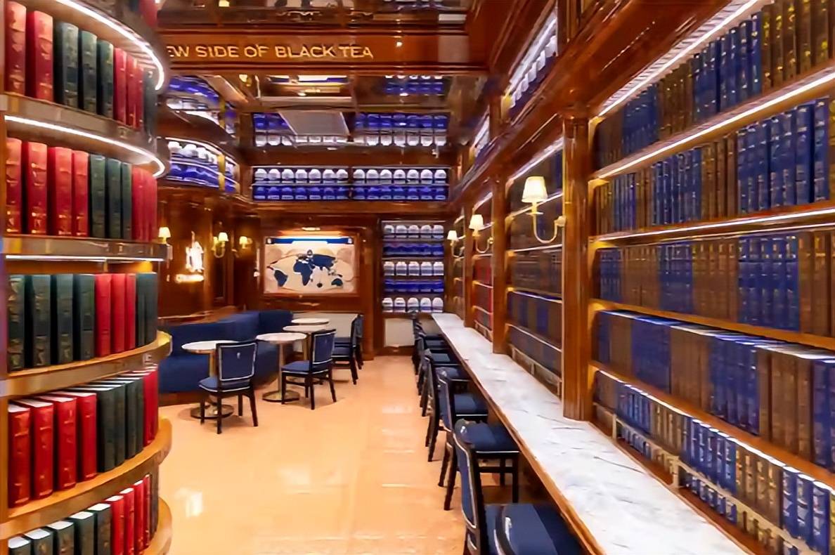 CHARLIE TOWN红茶公司以红茶图书馆为主题,空间之中,深色木质书架延展为结构骨架, 气味、温度与时间,在其中被归档与展开。