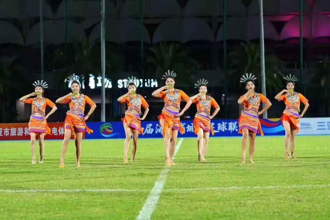2025年12月14日晚上在三亚市体育中心-白鹭体育场选送舞蹈作品《APT》《黎家恋歌》参加“启航自贸港”第一届海南省城市足球联赛,用文艺的舞姿为赛事点燃热情。