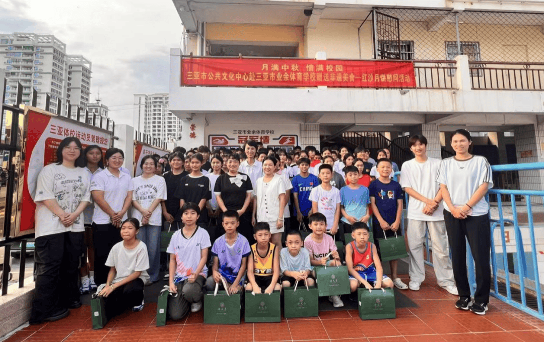 2025年9月21日下午,在中秋佳节来临之际,三亚市公共文化中心组织开展“月满中秋,情满校园”三亚非遗美食——红沙月饼赠送慰问活动,由三亚市文化馆携爱心企业,走进三亚市业余体育学校,为11位教练和80名学生赠送红沙月饼,提前送上一份特别的中秋祝福。