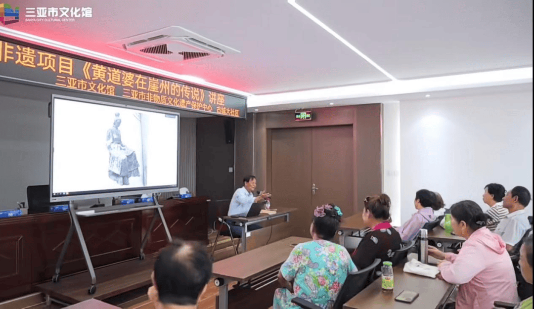 2025年2月26日,三亚市文化馆、三亚市非物质文化遗产保护中心联合崖州区古城大社区党群服务中心,举办三亚市市级非遗项目《黄道婆在崖州的传说》讲座。本次讲座由非遗代表性传承人张远来老师主讲,张远来老师以“传承崖州记忆·讲述黄道婆传奇”为主题,围绕黄道婆的特殊身世、杰出成就和重大贡献,讲述了黄道婆在崖州学习纺织技术,通过改革、传播棉纺织技术和工具对当时长江流域棉纺织业和棉花种植业的迅速发展做出了巨大贡献,对我国棉纺织业的发展也产生了深远影响。