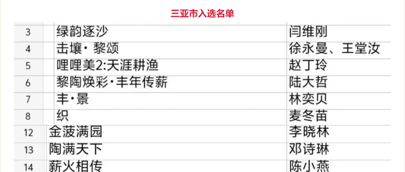 2025年12月,在由海南省旅游和文化广电体育厅主办、海南省文化馆承办的第二十二届海南省东西南北中广场文艺会演暨第二十届群星奖初选活动中,三亚市文化馆选送的群众文艺作品成绩斐然,可喜可贺。其中,舞蹈《坯·彩雕》《渔家织月》以及音乐作品《竹竿舞曲》均荣获“优秀群众文艺作品”奖项。
