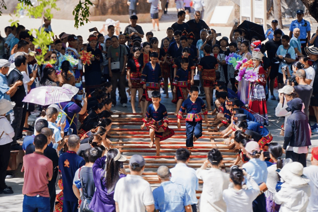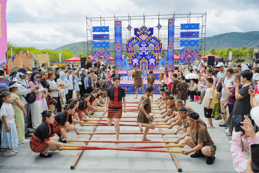 2025年5月1日,在五一劳动节当天,三亚市文化馆、三亚市非物质文化遗产保护中心联合海旅免税城,策划一场非物质文化遗产展,现场有三亚市非遗市集、黎苗传统舞蹈展示展演、苗家长桌宴等活动内容,市民游客参与沉浸式体验,实现“非遗+”融合发展,实现文化和旅游融合发展,同时提高市民游客对文化的保护意识。