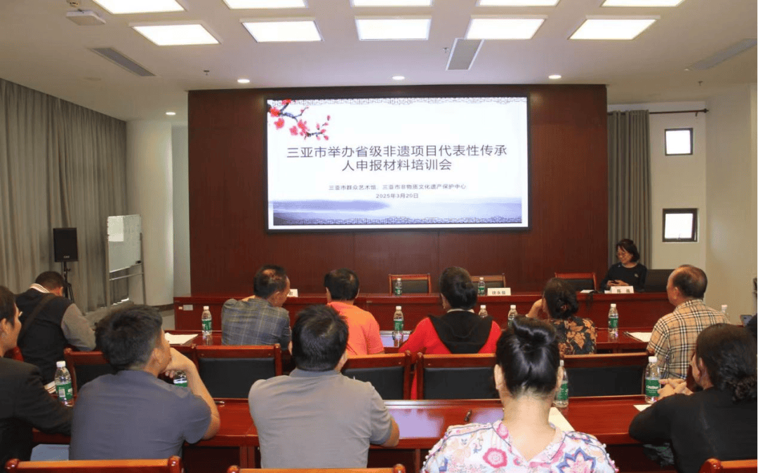 2025年3月20日下午,由三亚市文化馆、三亚市非物质文化遗产保护中心主办的“省级非遗项目代表性传承人申报材料培训会”培训会特邀海南省民族博物馆副馆长陈佩进行指导,29名市级非遗代表性传承人参加此次培训。本次培训围绕政策解读、申报书填写指导和案例分析三个方面展开,详细解读了申报政策依据、条件和评审标准,并针对申报表中各个板块的填写规范和注意事项进行了细致讲解。