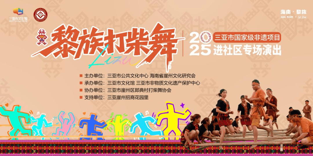 2025年12月6日—2025年12月7日,在崖州区招商花园广场、东信社区举办2025年国家级非遗项目《崖州民歌》《黎族打柴舞》专场演出,通过国家级非遗项目《崖州民歌》《黎族打柴舞》的展示展演活动,扩大三亚市民间传统音乐、传统舞蹈的影响力。同时给当地群众带来文化盛宴,丰富市民游客精神生活。
