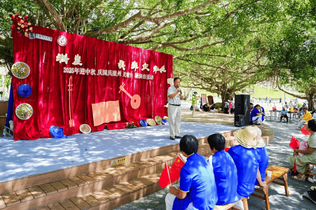 2025年10月1日,在三亚市南山景区举办“月满崖州 歌舞庆华诞”崖州民歌专场演出。活动设置传统崖州民歌舞台展演、非遗鹧鸪茶品尝、民族舞蹈展演、非遗趣味互动等内容。十余首崖州民歌,以独唱、对唱、合唱等多种形式呈现,富有浓郁地方特色的节目吸引游客纷纷驻足。