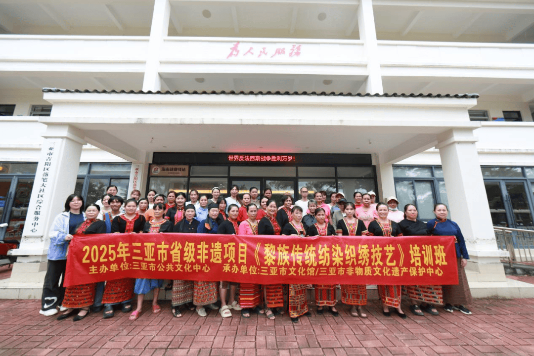 为深入强化和规范我市非物质文化遗产项目《黎族传统纺染织绣技艺》的传承保护工作。2025年9月12日—2025年9月16日,在三亚市吉阳区落笔大社区举办《黎族传统纺染织绣技艺》培训班,坚持理论与实践相结合,以集中辅导为主、个别指导为辅的教学方式。由传承人进行现场示范教学,从最基本的黎族“纺、染、织、绣”四大工艺介绍、黎锦图腾图样介绍、织绣基础知识、织法传授等内容逐步推进,让学员由浅入深,学会黎锦中的织绣技艺。