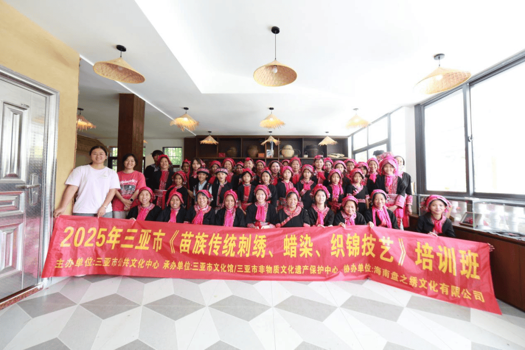 2025年8月7日—2025年8月12日,在育才生态区那会村举办《苗族蜡染、刺绣技艺》培训班,培训班围绕着苗族刺绣、蜡染进行培训班,其学员来自三亚市育才生态区,苗族刺绣、蜡染技艺培训,完整的将苗族服饰重要的技艺呈现出来,苗族服饰图案往往取材于日常生活中各种物象,往往在运用一种主要的工艺手法的同时,穿插使用多种工艺手法。
