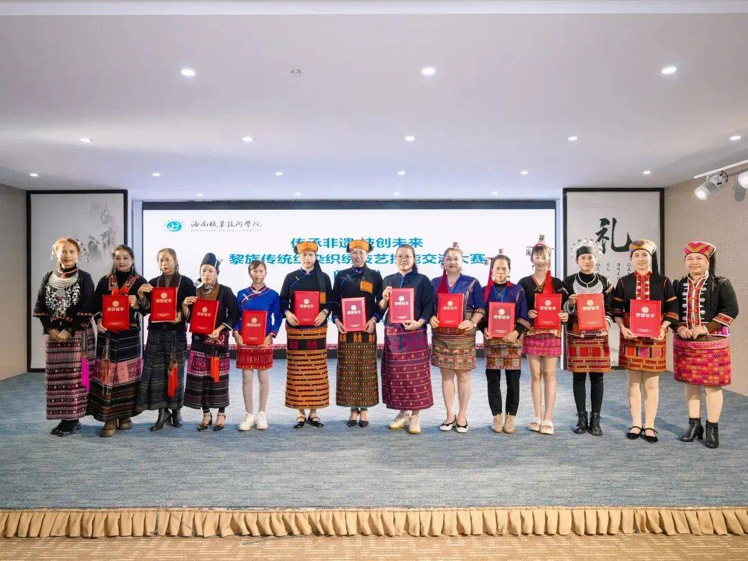2025年1月,由海南省旅游和文化广电体育厅主办,海南职业技术学院承办的“传承非遗 技创未来——黎族传统纺染织绣技艺技能交流大赛”在海南职业技术学院举行。来自全省9个市县五大方言区的近百名黎族传统纺染织绣技艺传承人同台竞技。其中,由三亚市非物质文化遗产保护中心报送的9名非遗传承人在此次大赛中荣获34个奖项。