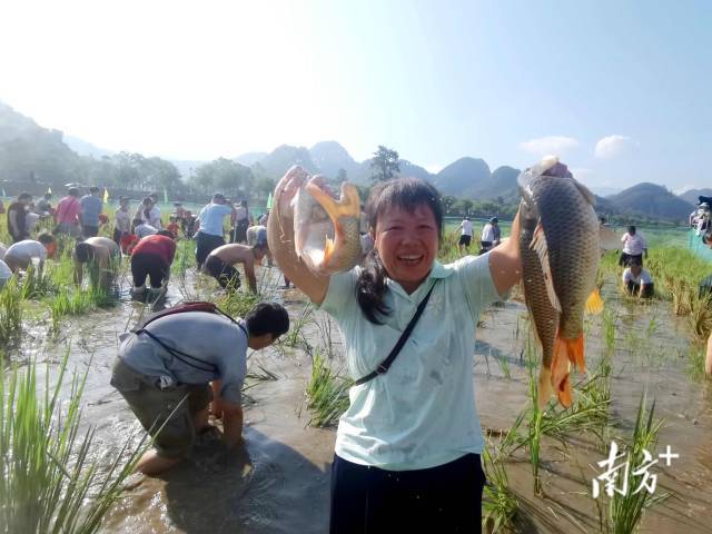 点评:每年秋收时节,前来连南抓稻田鱼,已成为众多老广体验农事快乐的首选。如今的连南,已成功打造了赏鱼、抓鱼、吃鱼、购鱼的稻田鱼产业链,吸引了更多游客,更带动稻田鱼养殖产业的发展,让千年农耕文化在新时代绽放出更强的活力,也为连南的农文旅融合发展注入了源源不断的动力。
