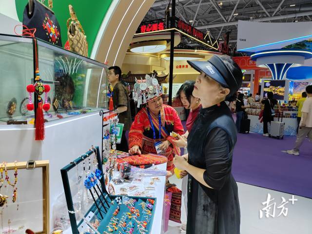 “这件衣服(瑶族盛装)好漂亮,我能天天穿吗?”“可以跟你学瑶绣吗?”在第二十一届中国(深圳)国际文化产业博览交易会上(简称“文博会”),一道具有独特魅力的“瑶族风景线”备受追捧——来自连南瑶族自治县的特色展品被置于清远馆的中心区域,瑶绣饰品和包包、瑶族银饰、文创产品以及连南大叶茶等产品受到各地参展商和游客的关注。
